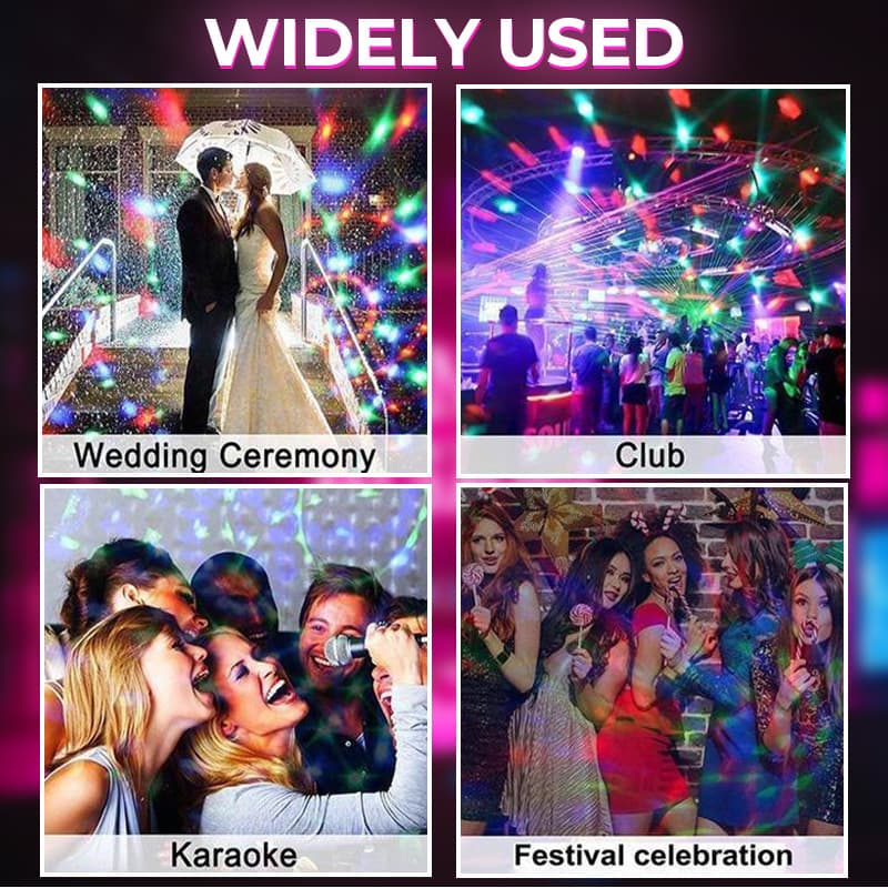 - ââ PLUG AND PLAY - Projicera ett roterande flerfĂ€rgat mönster pĂ„ vĂ€ggar, tak eller golv var som helst. LĂ€mplig för födelsedagsfest, hemmafest, poolfest, discofest, dansfest, pyjamasfest och festivalevenemang som jul-, halloweenfester. Scenbelysning kan göra vilket rum som helst till en fest.
