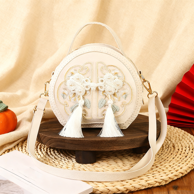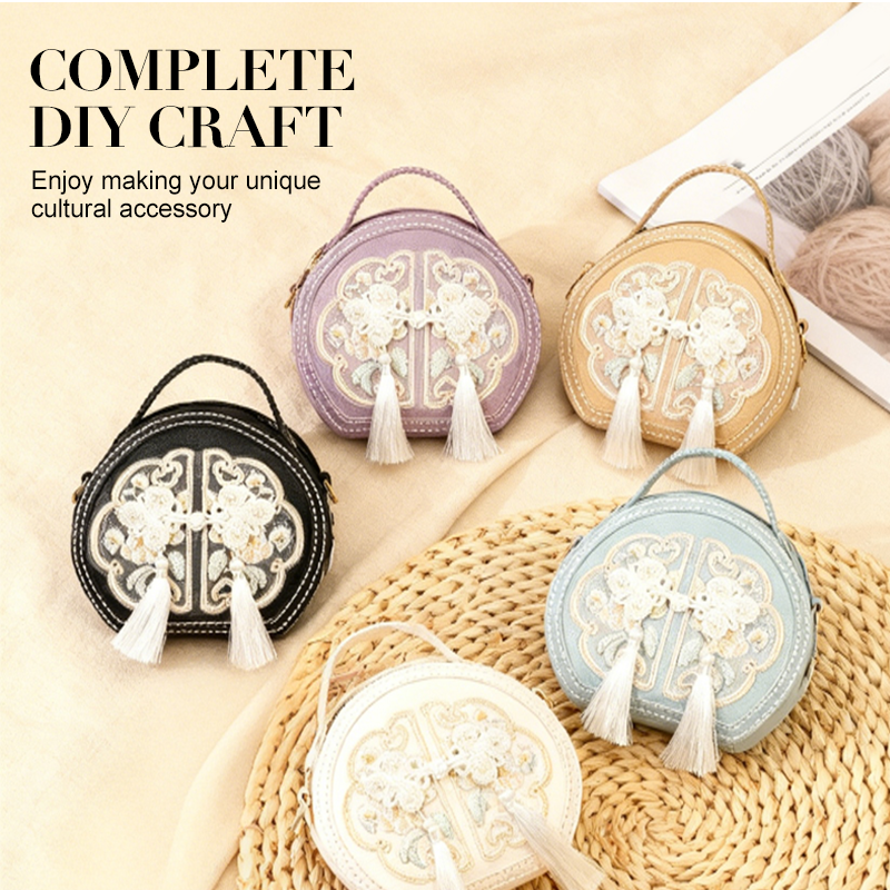 COMPLETE DIY CRAFT KIT - This comprehensive set includes all necessary components to construct a traditional Chinese style round bag. Enthusiasts can engage in a fulfilling craft project, assembling each piece to create a unique accessory. The kit provides threads, PU leather, hardware, and instructions to guide the process.