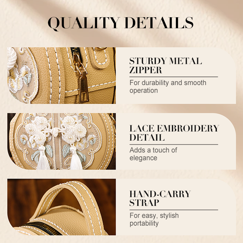 ELEGANT AESTHETIC DESIGN - Featuring classical Chinese cultural motifs, the finished bag exhibits a refined and timeless appeal. Its round silhouette and detailed embroidery patterns reflect traditional artistry. This design complements various outfits, adding a touch of cultural elegance to your ensemble.