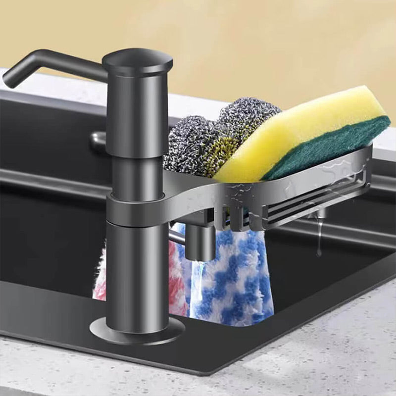 INTEGRERAD HYLLA: Maximera ditt köksutrymme med den inbyggda hyllan, perfekt för förvaring av svampar, borstar och andra småsaker. Håll diskbänksområdet organiserat och fritt från skräp med denna praktiska funktion.