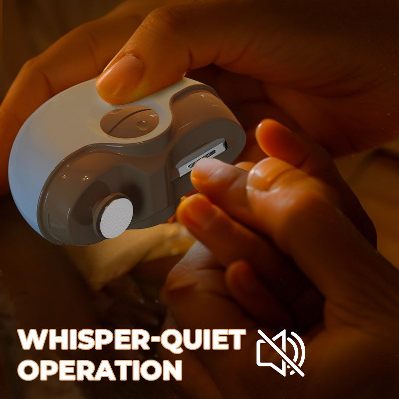 DUBBELFUNKTIONSDESIGN FĂR KLIPPNING OCH POLERING: Kombinerar automatisk nagelklippning och skonsam polering i en enhet. FĂ„ jĂ€mna, vĂ€lklippta naglar utan behov av separata verktyg, vilket sparar tid och anstrĂ€ngning.