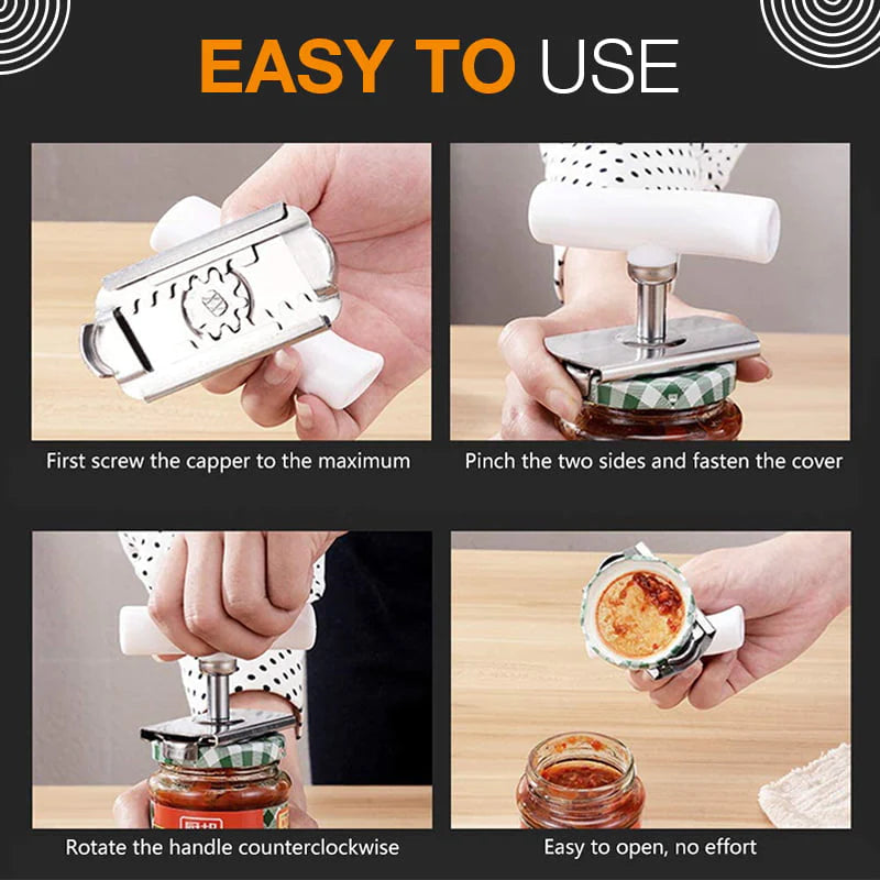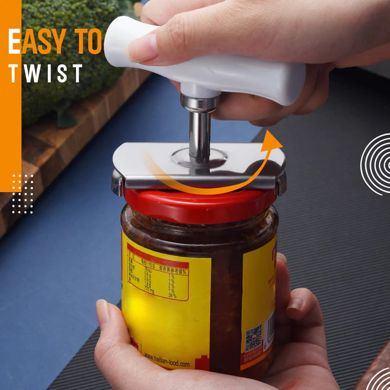 - LĂTT ATT Vrida: StĂ„ltĂ€nderna pĂ„ klĂ€mman tar tag i kanten pĂ„ det envisa locket hĂ„rt och hĂ„ller det hela tiden du vrider. Det tar bara en enkel vridning för att öppna