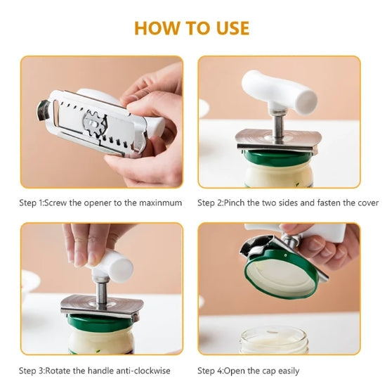 Speciellt designad för dig som alltid behöver hjĂ€lp med att öppna burkar. Ăven en frisk hand kan ibland ha problem med att öppna ett burklock, för att inte tala om de med svaga eller artritiska hĂ€nder. Denna justerbara burköppnare öppnar enkelt de flesta burkar med en enkel vridning!