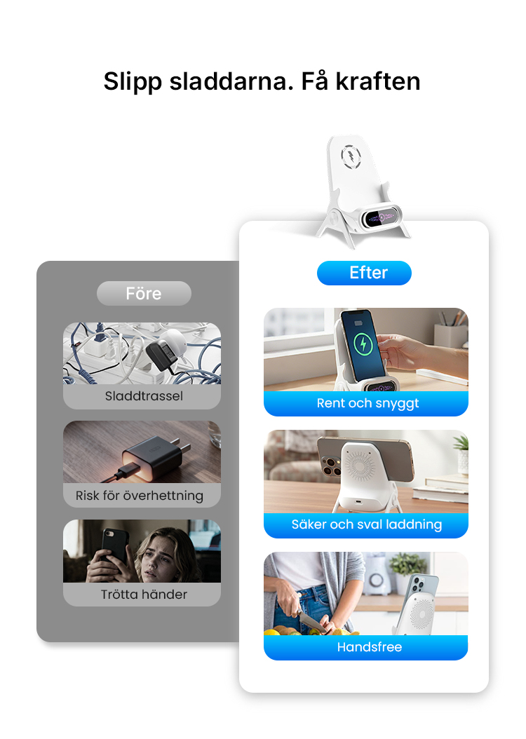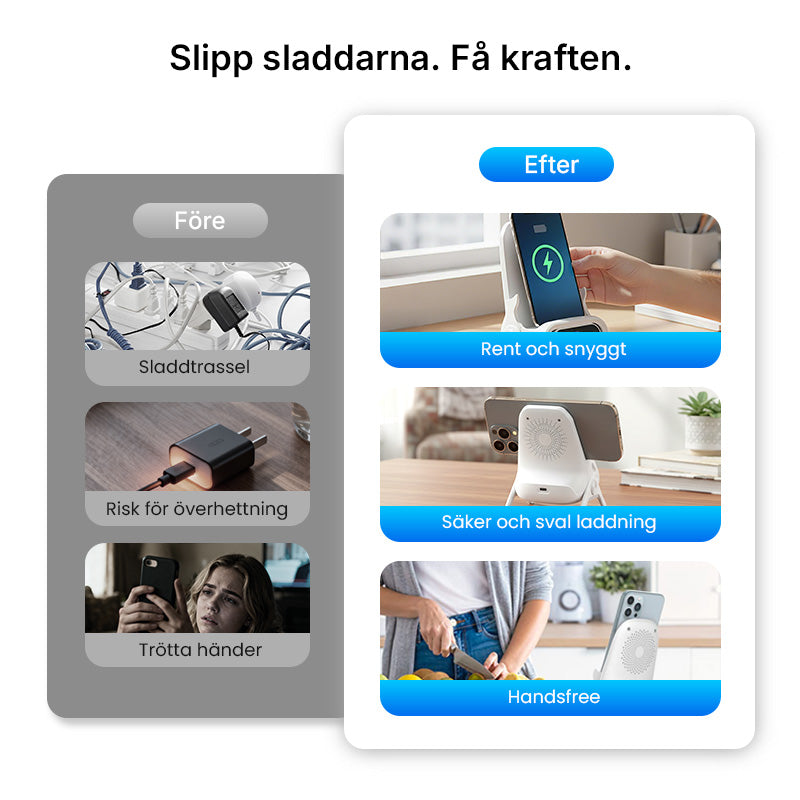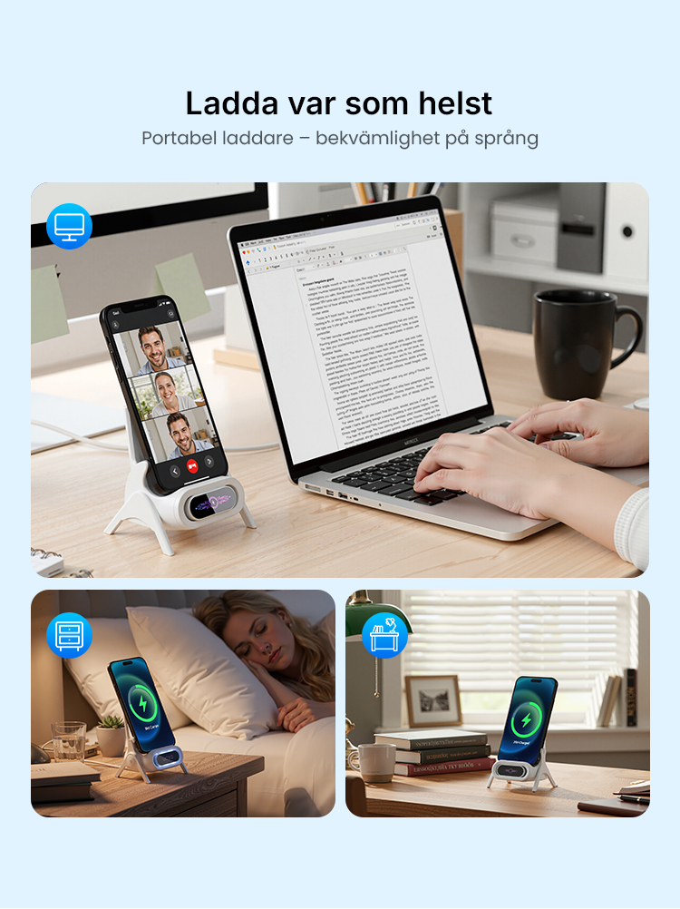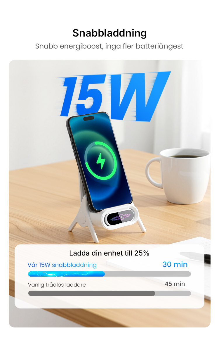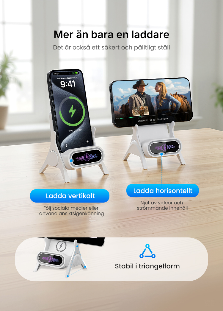 đ± 50 % RABATT! âš TelefonhĂ„llare med trĂ„dlös snabbladdare â universell justering och 360° rotation, perfekt för resor eller kontoret đđŠ