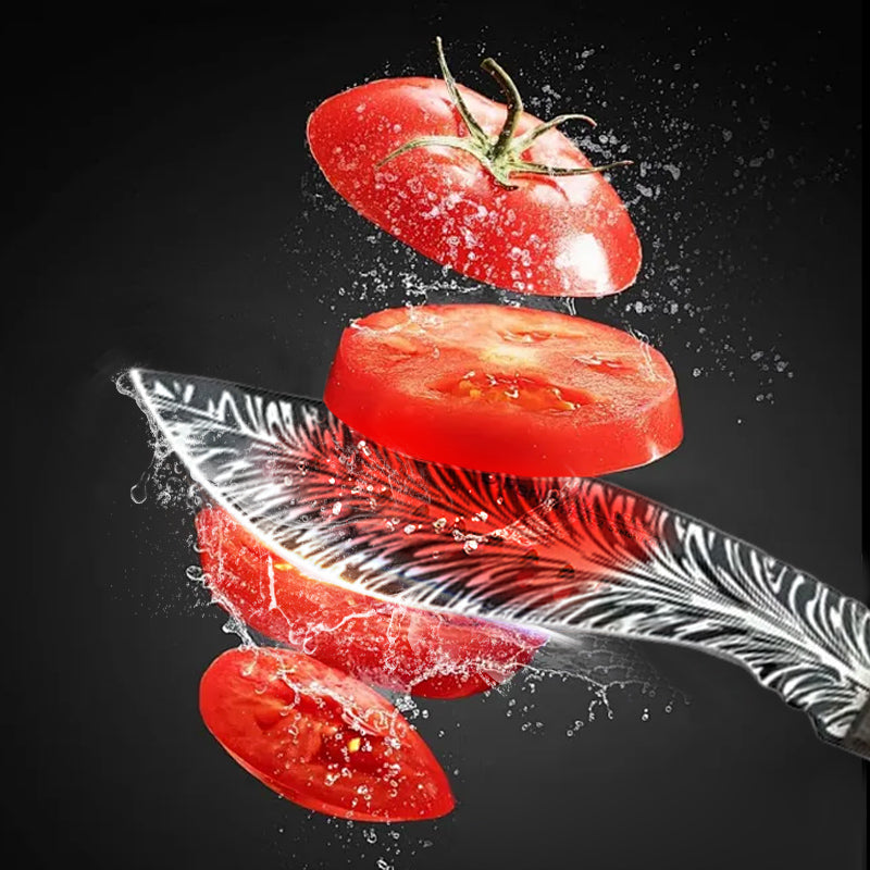 Paketet innehåller: 1/2/4* Vass fjädermönstrad kniv i rostfritt stål
