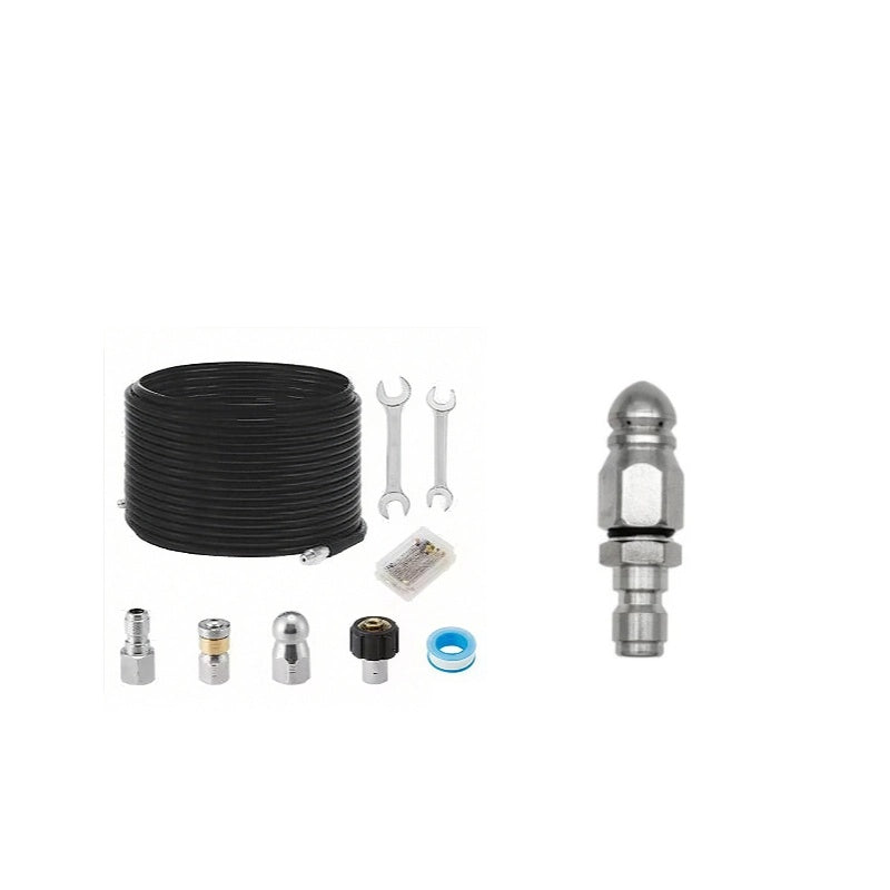 KOMPLETT AVLOPPSSPOLNINGSSATS â InnehĂ„ller alla nödvĂ€ndiga tillbehör för omedelbar anvĂ€ndning, sĂ„som munstycken, kopplingar och en kraftig slang, vilket gör den till en komplett lösning för alla dina behov av avlopps- och rörrengöring.
