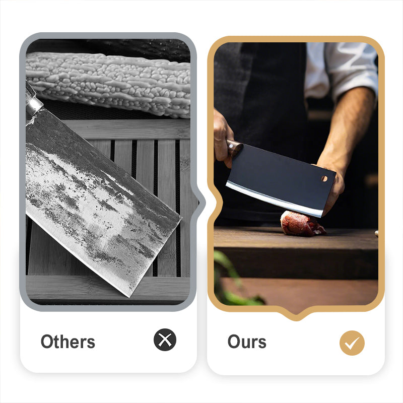 VÄRMEBEHANDLAD & SMIDD KONSTRUKTION: Tillverkad med traditionella smidningstekniker och vĂ€rmebehandling för överlĂ€gsen hĂ„llbarhet. Bladet i högkolsstĂ„l motstĂ„r sprickbildning och behĂ„ller sin skĂ€rpa vid tung anvĂ€ndning. Till skillnad frĂ„n billiga stansade knivar sĂ€kerstĂ€ller denna smidda design lĂ„ngvarig prestanda i vilket kök som helst.
