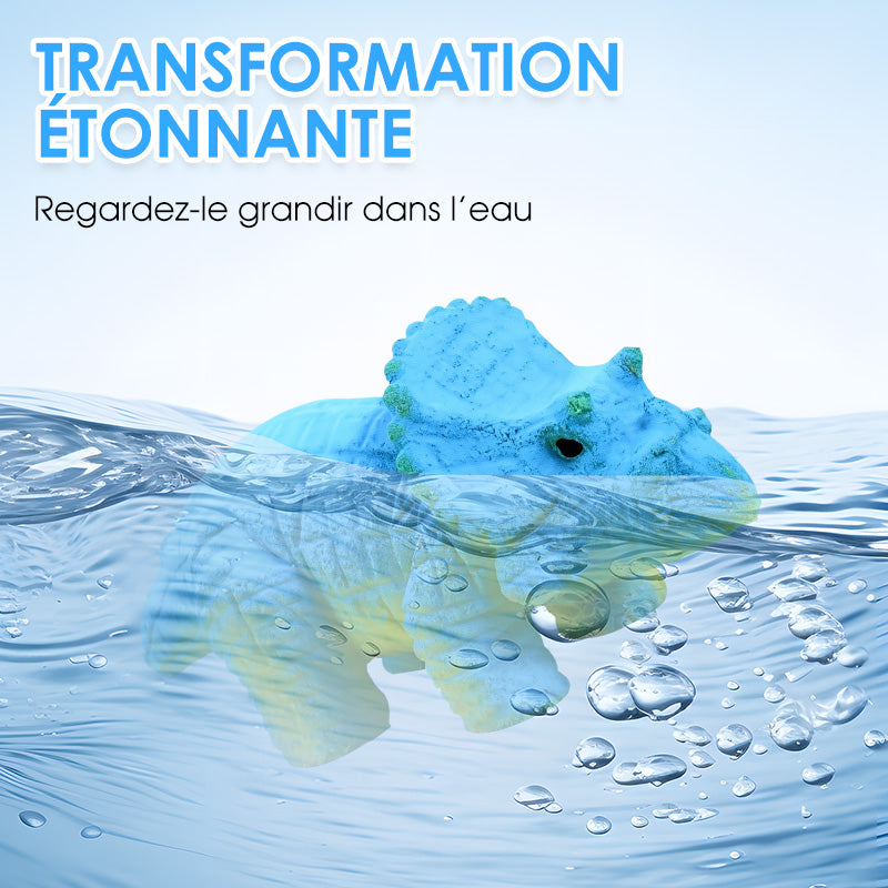 Étape 3 : Après l’éclosion, le dinosaure continuera de grandir. Maintenez-le complètement immergé dans l’eau pendant une semaine pour obtenir un dinosaure complet !
