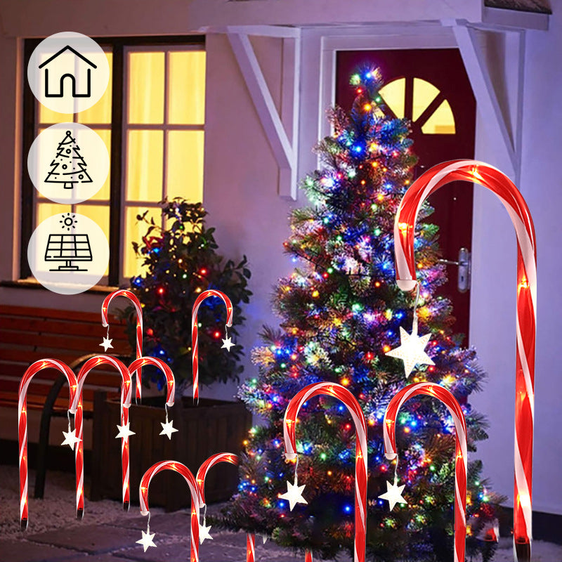 🔥Solcellsdrivna juldekorationer: godisstavslampor